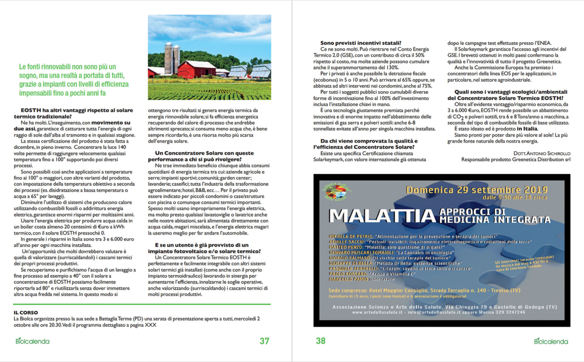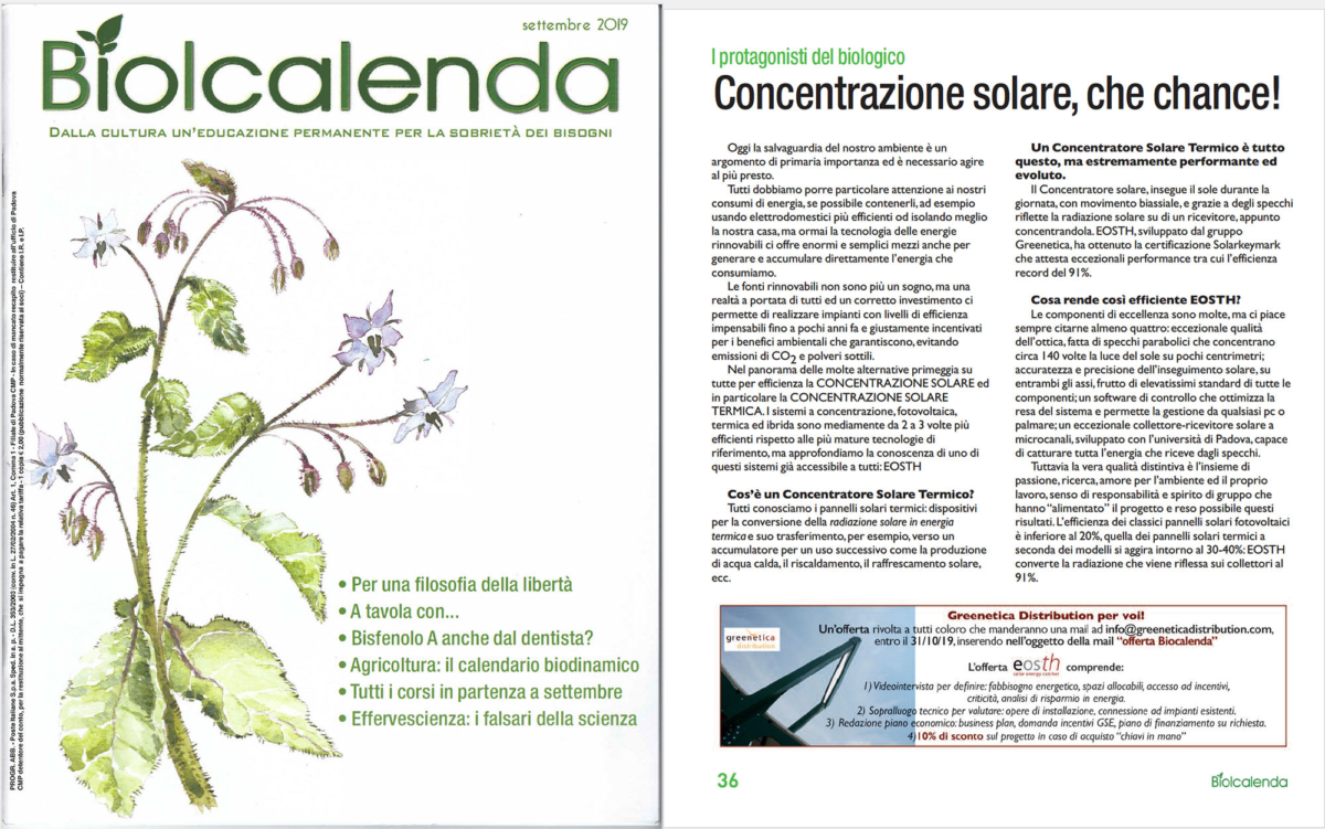 Alle 20.30 presso l’Associazione Culturale LA BIOLCA in via G. Marconi 13 (ex Stazione Ferroviaria) Battaglia Terme, ore 20.30, si terrà una conferenza sulle energie rinnovabili e verrà presentato l’Innovativo Concentratore Solare Termico EOS TH – 91% di efficienza Certificata, mai raggiunta prima.
