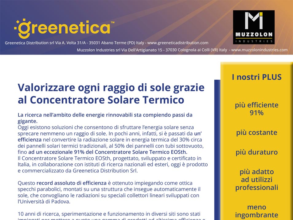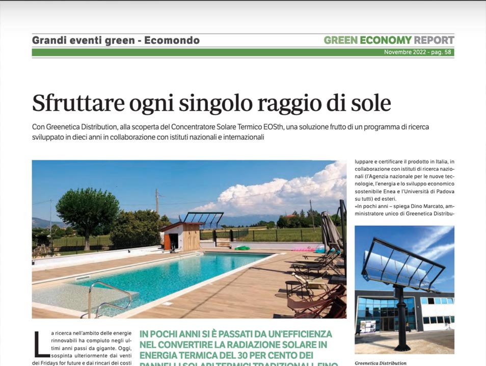 Il Sole 24 ore parla di Greenetica Distribution e del Concentratore Solare Termico più efficiente al mondo, per far risparmiare e aziende.